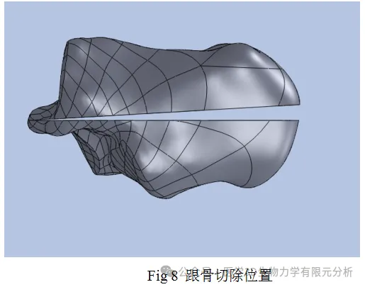 跟骨切除位置如图Fig 8所示。切除后,使跟骨的两个切除面相重合,得到整体模型如图Fig 9 所示。