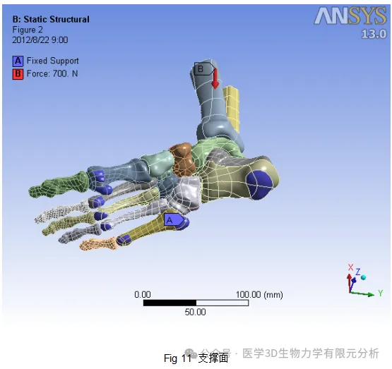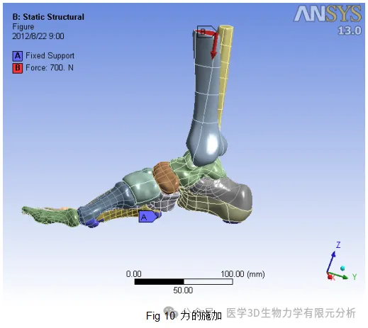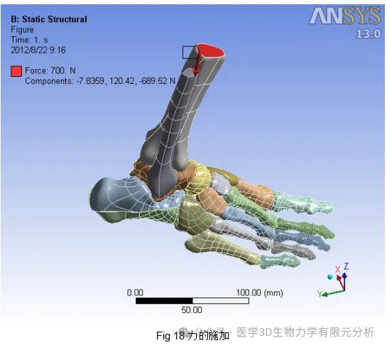 施加的作用力为F=***N。作用在胫骨上。如图Fig 10所示。