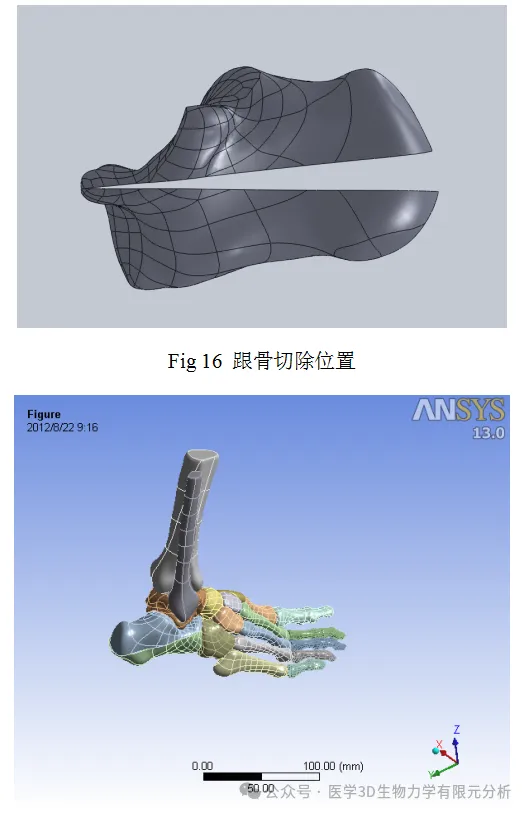 跟骨切除位置如图Fig 16所示。切除后,使跟骨的两个切除面相重合,得到整体模型如图Fig 17 所示。
