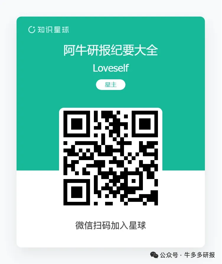 请扫描下方二维码加入“阿牛研报纪要大全”知识星球