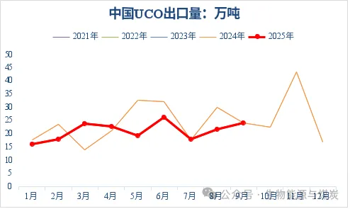 近年来,我国UCO出口呈现逐年快速攀升状态。