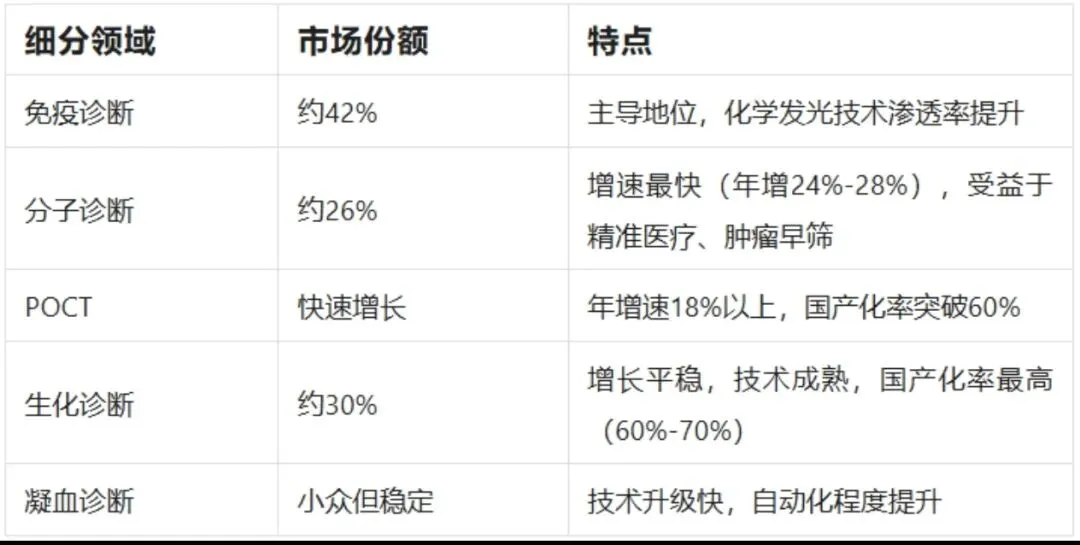 高端领域(化学发光、分子诊断、基因测序仪)替代空间巨大,本土企业加速技术突破。