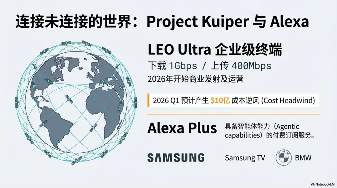 亚马逊还有一项类似于Space X星链的布局,就是低轨卫星互联网项目Kuiper。单独看它很像一个烧钱、回报慢、还要和星链硬碰硬的业务,但把它放回亚马逊的主叙事里,它更像是在把AWS的边界从“有地面宽带的地方”延伸到“任何地方”。