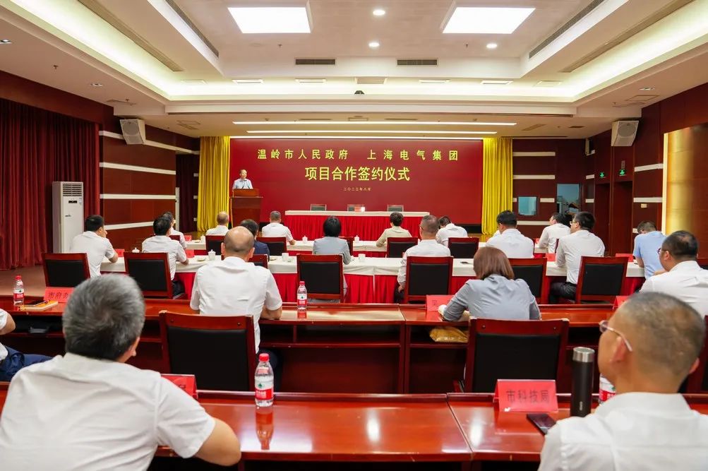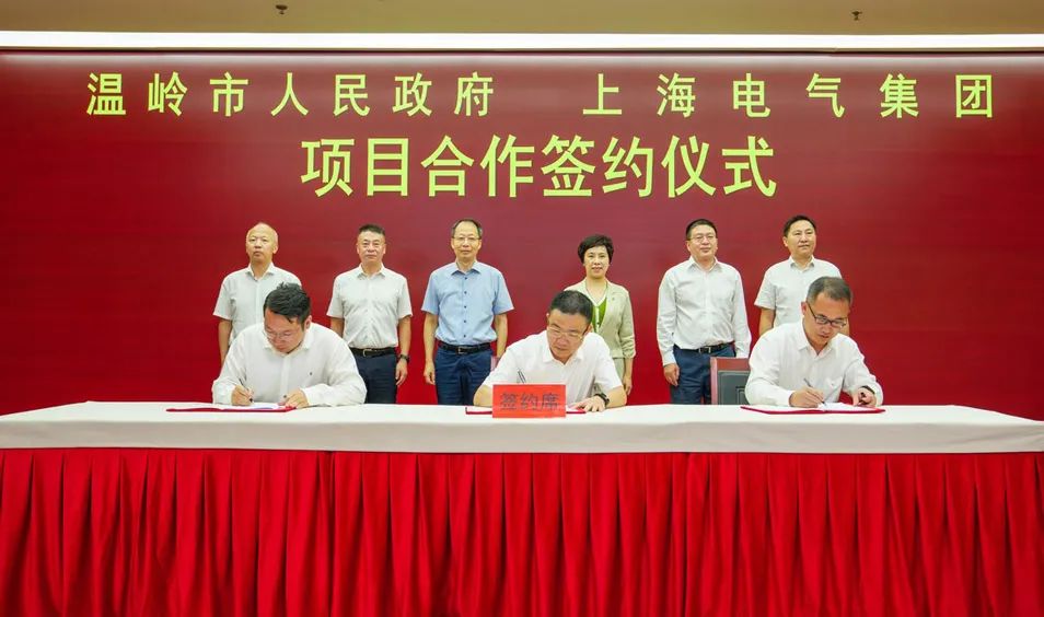 8月20日下午,在台州市委书记李跃旗和上海电气集团党委书记、董事长冷伟青等领导的共同见证下,上海电气与温岭市政府就储能电池项目、低压电机项目以及温岭海上风电开发项目签署一揽子合作协议。