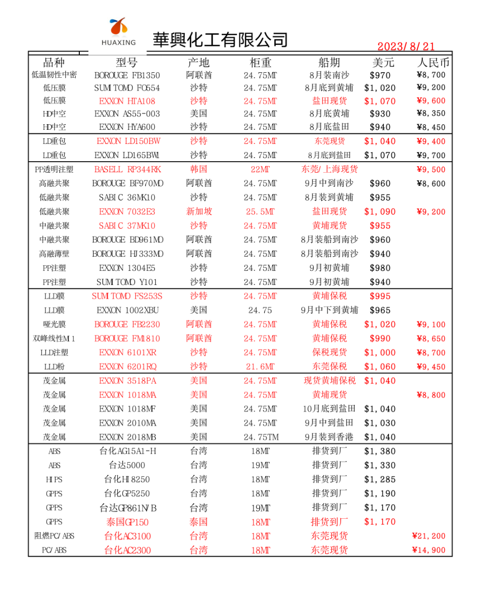 華興化工有限公司主營塑膠原料,總公司設於廣州從化,貿易部設於深圳,公司擁有高素質的精英團隊。公司一貫本著信譽第一、客戶至上的經營理念,為廣大客戶提供優質產品與服務。公司主要經營品種有:HDPE、LDPE、LLDPE、ABS、GPPS、HIPS、PP...;與埃克森、沙比克、QAMAR、BOROUGE、BASELL、住友、ARAMCO、台化、台達、國喬、台塑、奇美等世界知名化工廠長期保持著良好的合作關係,可隨時提供穩定的貨源.公司靈活的經營機制、合理的銷售價格以及誠信的服務理念,一直廣受客戶及供應商稱譽,我們願以優質的產品、一流的服務和誠信的經營,與廣大客戶共創雙贏!