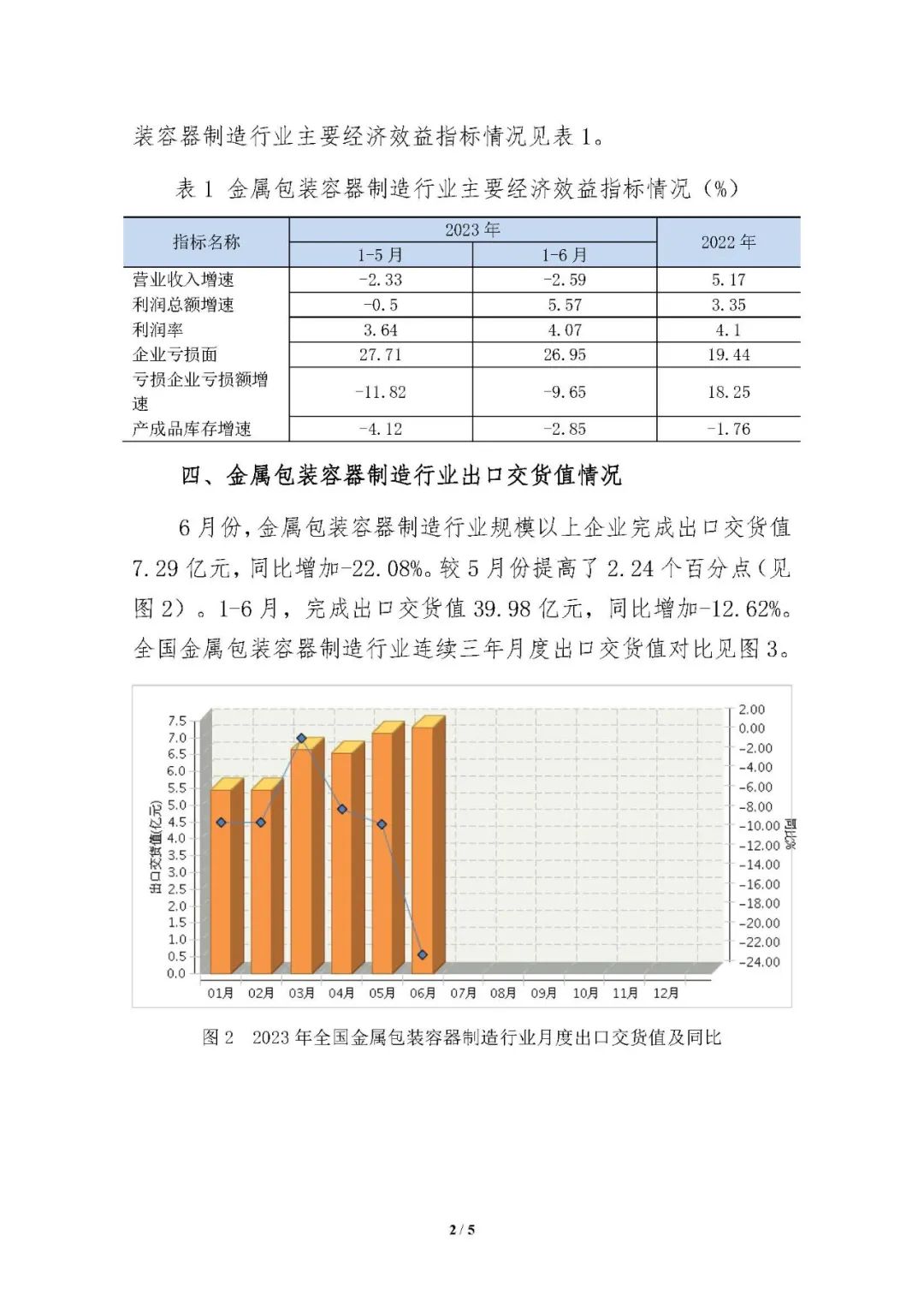 简报 | 2023年6月金属包装容器行业经济运行简报