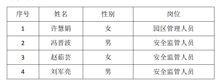 根据《阳城县北留化工园运营有限公司人才招聘公告》要求,经过报名、资格初审、考核确定拟聘用人员4名,现将拟聘用人员名单予以公示。
