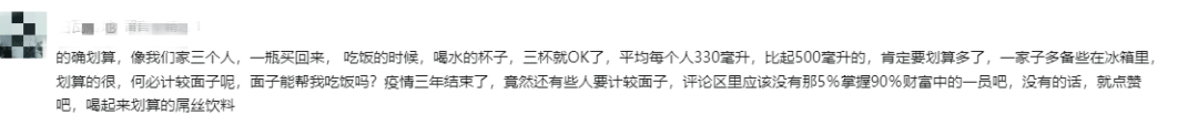 更有网友锐评,疫情三年让自己明白面子并不能代表一切,性价比才是她购买饮料的关键。
