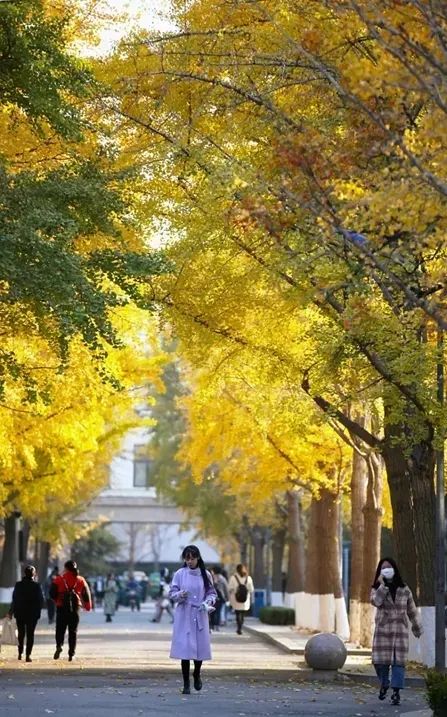 两条银杏大道主轴为东校区的名片之一,移出车行功能后无疑将成为体现校园风貌及实现步行连通的重要景观廊道。设计师利用主轴两侧的现状植物附加通行及休憩交流空间,使其成为名副其实的“景观大道”。经过梳理的空间更加拉近了人与现有植物的关系,新的校园公共空间功能丰富、尺度宜人,很好地满足人们在不同时间段各类活动的需求。