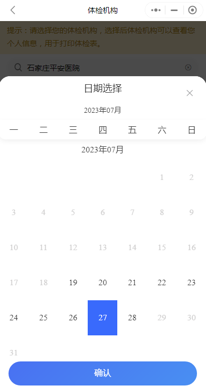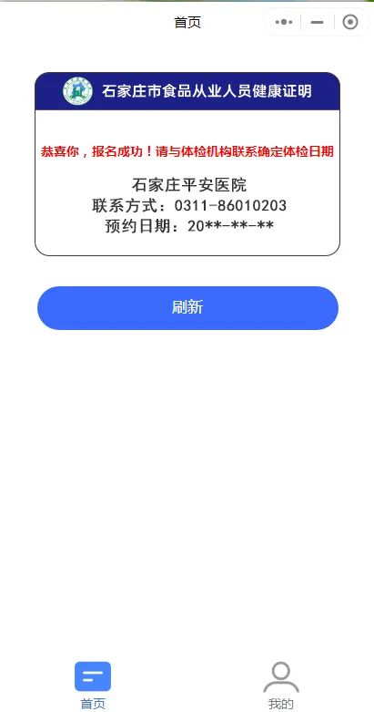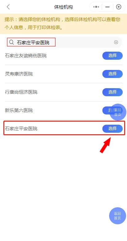 (3)选择体检机构“石家庄平安医院”,选择体检时间,完成报名