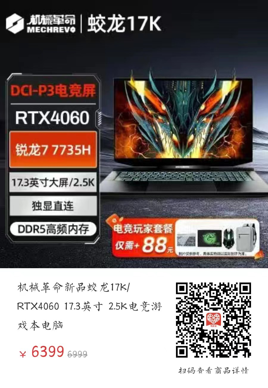 机械革命蛟龙17K入选拼多多百亿补贴秒杀万人团,补贴后到手价低至6399,顺丰包邮、赠运费险,多种配置可供选择:16G+512G补贴后6399元;16G+1T补贴后6499元;32G+1T补贴后6999元。全网最低价,超值优惠,不要错过!