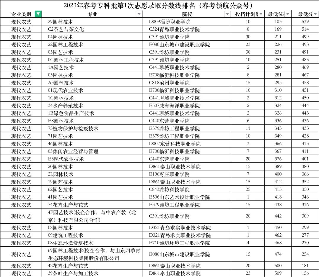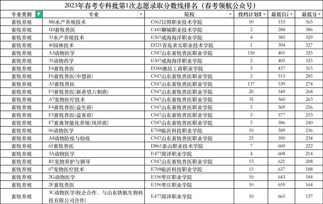 畜牧、服装、现代农艺 |2023年春考录取分数排名