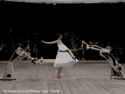 超模Shalom Harlow身着束胸白裙优雅地站在舞台中央的圆形转盘上旋转,像极了一只受惊的天鹅。两侧的机械手臂分别往她身上喷绘亮黄绿和素黑的颜料,对着她的裙子喷绘了足足一分钟,「天鹅之死」充满了暴力与浪漫,呈现出了一种“漆淋淋”的凄艳之感。