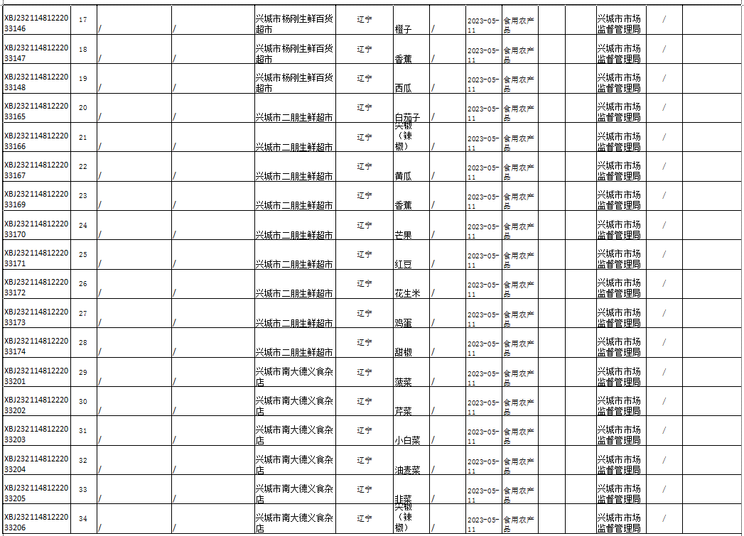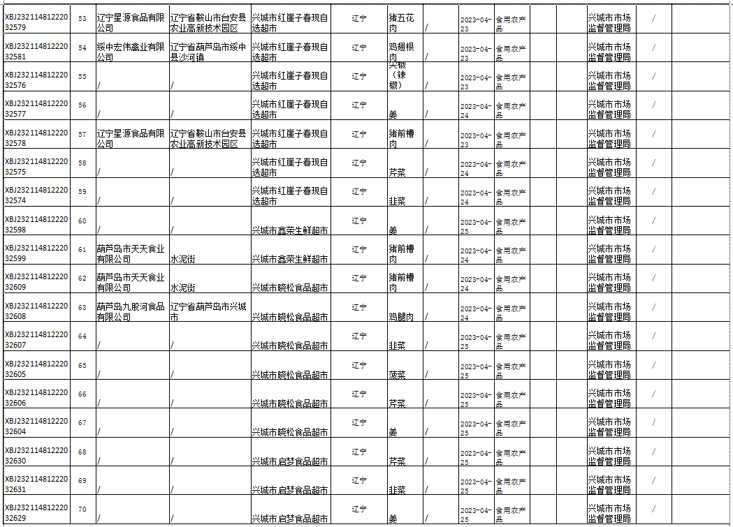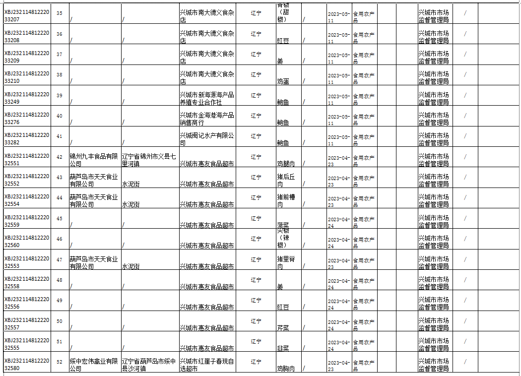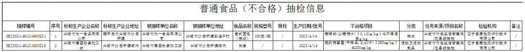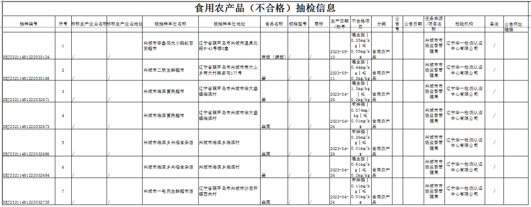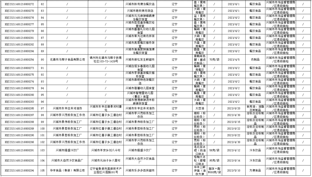 2023年兴城市食品安全抽检信息通告(第二期)
