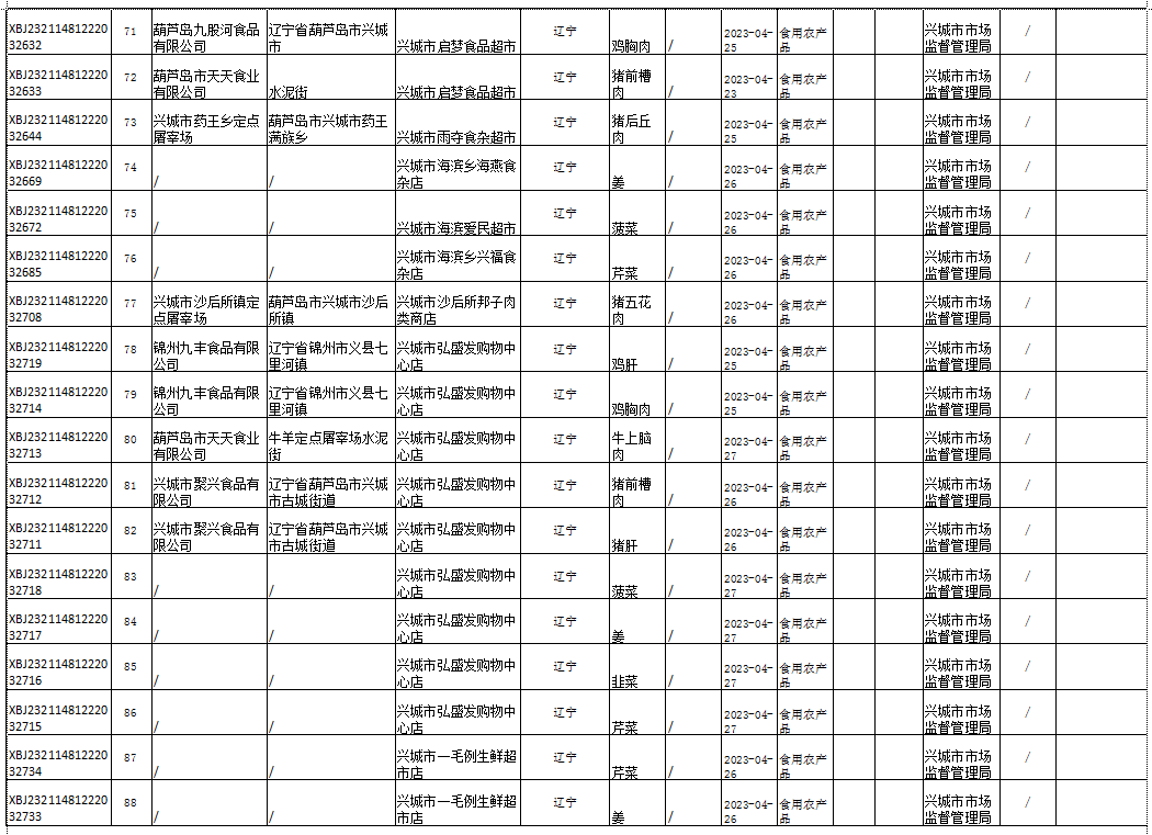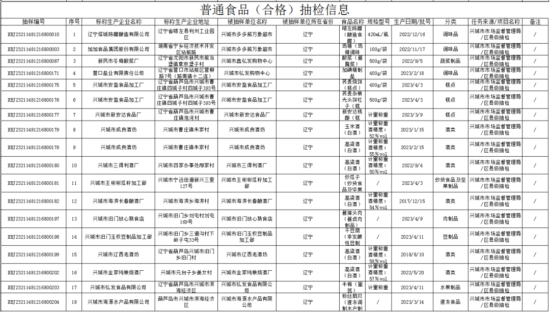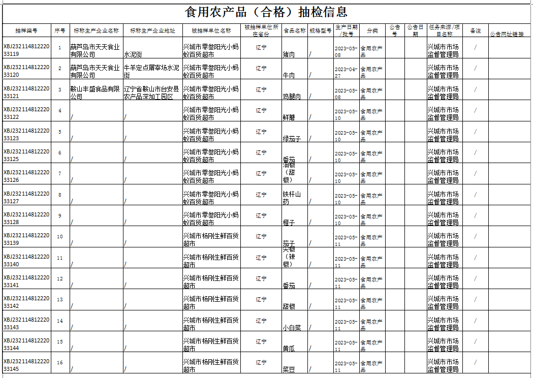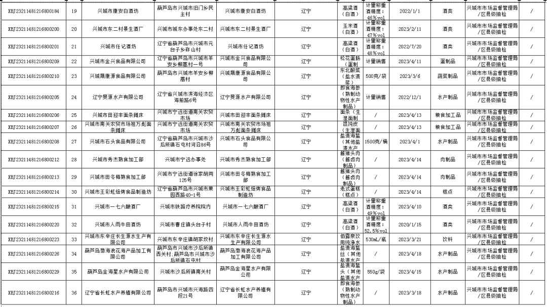2023年兴城市食品安全抽检信息通告(第二期)