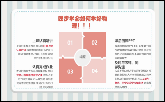 郭蓉就《大学物理B》分享了自己的经历和学习经验。她总结出“如何学好物理四步走”:“上课认真听讲”“课后回顾PPT”“认真完成作业”和“及时与老师和同学沟通”。