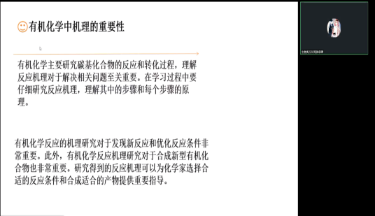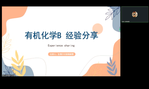 在专业知识分享部分,杨婉莹和陈思晴主要对《有机化学B》的学习展开分享。