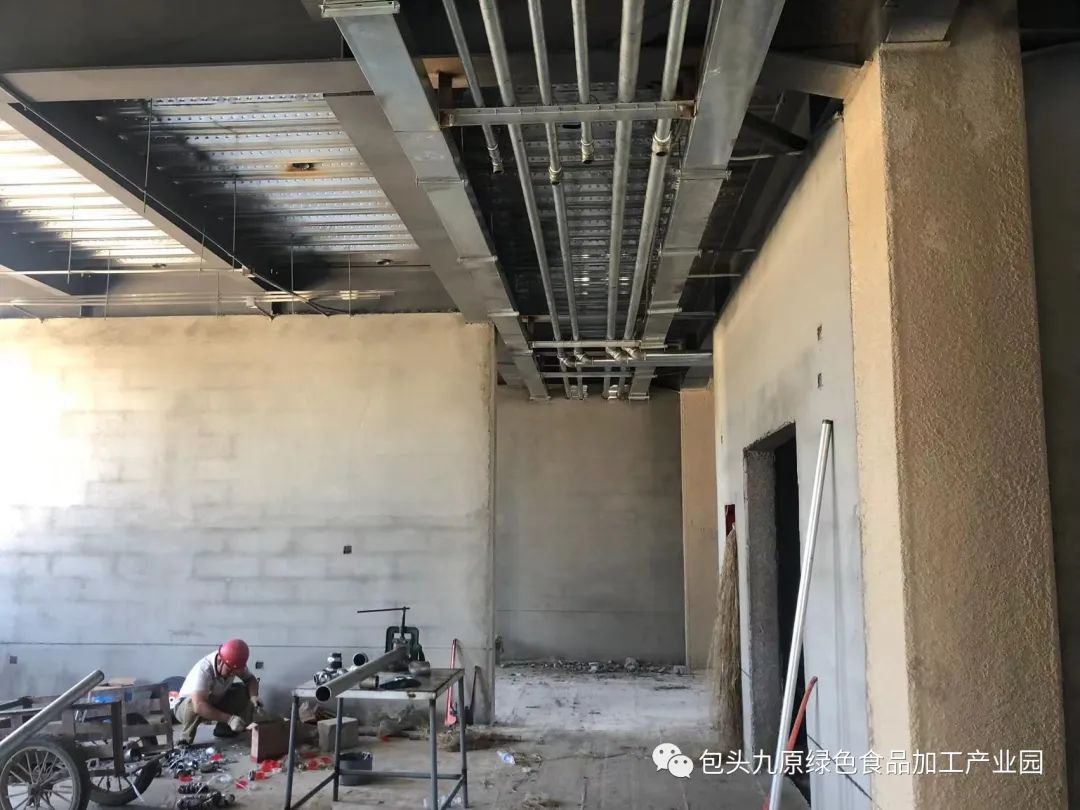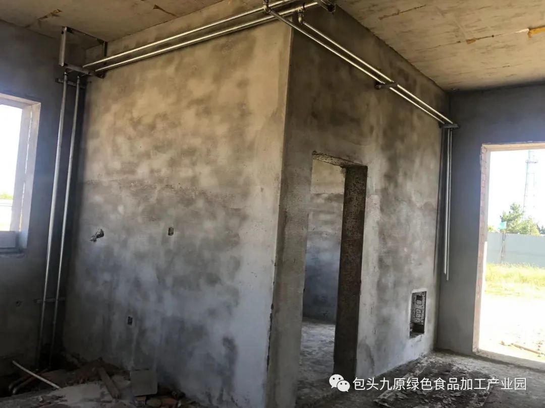 上周◆营业室内部供暖管道铺设已完成,办公楼内部抹灰已完成,生产车间二层砌墙已完成,厂房安装顶梁已完成,仓桶养护二层混凝土已完成,消防水池做地面防水已完成。