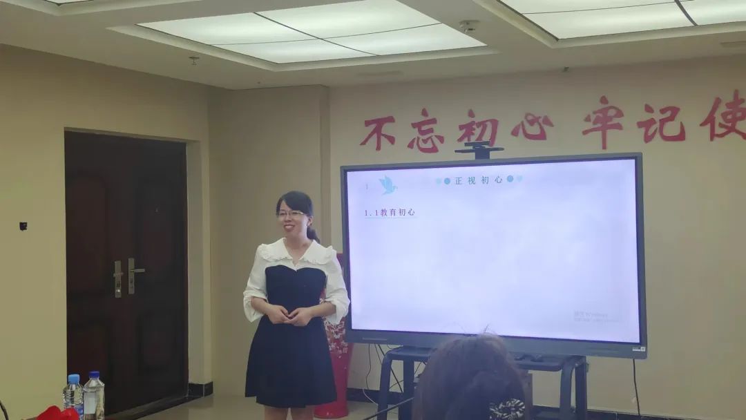 纪梦璇老师以《坚守教育初心 勇担教育使命》为题,通过分享自己教师生涯发展经历,与新教师一起回顾教育初心。