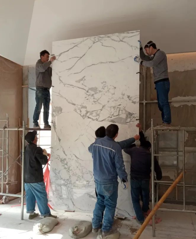 【有石CAD】5000+石材企业,10000+石材技术员都在用!1.天然大理石毛板为了防止石材易断裂的问题,普遍都会在石材的背面加背网易增强石材的整体性,尽量的避免石材断裂的发生。不过由于运输中可能参与的工人经验的不同也会造成石材的断裂。2.天然大理石在工厂里加工的时候,由于造型不同,所用的位置不同,每块完成的尺寸也不尽相同,而且很多板面都比较狭长,这样就很容易造成石材的断裂,所以在厂里加工的时候,我们一般是加工后天然大理石的尺寸中长度超过1米的时候都会加筋,宽度越宽加筋的数量就会随之增加。3.如果切板的宽度太窄,只有10公分以内的我们一般也会加筋,因为宽度越小石材越容易发生断裂。板面很大的时候我们还会考虑在石材的背面粘一块人造石。1.现在天然大理石在厂里加工的时候都会在石材的光面贴一层保护膜,既可以减少断裂也可以防止表面的划伤。2.在厂里把这些做好了之后,由长期运送石材的师傅送货,一般就可以避免运输中石材断裂的出现。安装也是一样,专业的安装师傅安装石材也可以很好的避免断裂。不过就算有少量的断裂,在安装完成后做镜面处理的时候也可以很好的处理掉,这也是天然大理石的优点。1.地面安装的时候,基础浇水润湿,然后铺贴石粉和水泥的混合物,然后再用石材压盖在上面,调高度和压紧实,然后在石峰上铺一层水泥浆,石材铺贴在水泥浆上并压紧实。2.所以地面安装的时候石材不是直接和基础面接触的,而且一层石粉水泥混合物,一层水泥浆,然后才是石材。3.石粉是过度和找平,水泥浆是粘接剂,石材是整个板面压盖在水泥浆上了,等水泥浆干硬了之后和石材就相当于一个整体,所以就不会发生在石材上面走动会把石材踩裂的情况。4.墙面石材安装室内一般是用云石胶和AB结构胶多点位的粘接在木工基层上的,一般我们只要不是专门用尖锐的器物去撞击石材表面,石材一般是不会断裂的。所以我们从天然大理石毛板本身的背网,厂里加工的加筋粘人造石,运输和安装的专业性,最重要的是了解地面铺贴和墙面粘接的结构,就会明白石材安装好了之后就不容易断裂了。