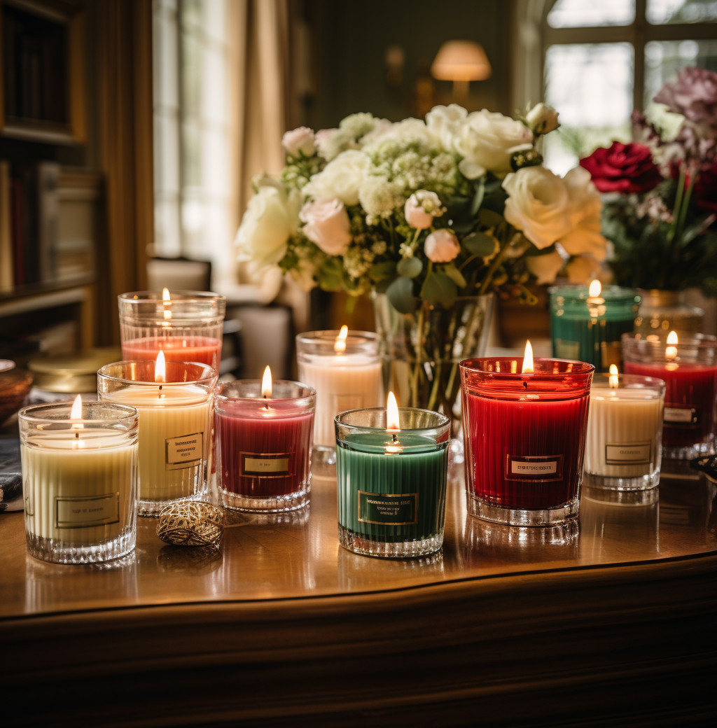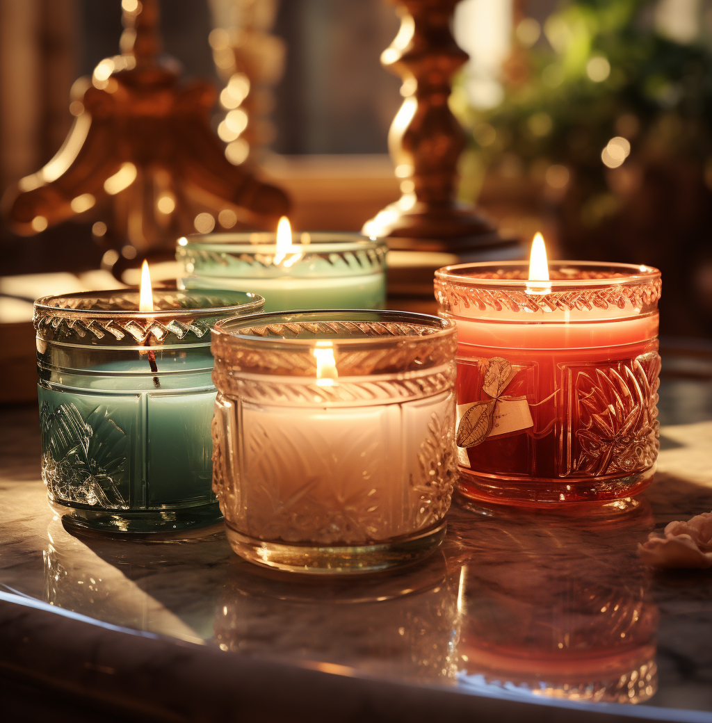 主题词以香薰蜡烛为主 + in the style of light crimson and green, rubens, light-focused, tonal sharpness, expansive, use of screen tones, pont-aven school
