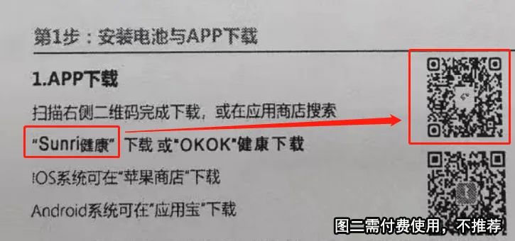 ①说明书扫码或应用商店搜索“sunri健康”,下载安装完成基本的注册