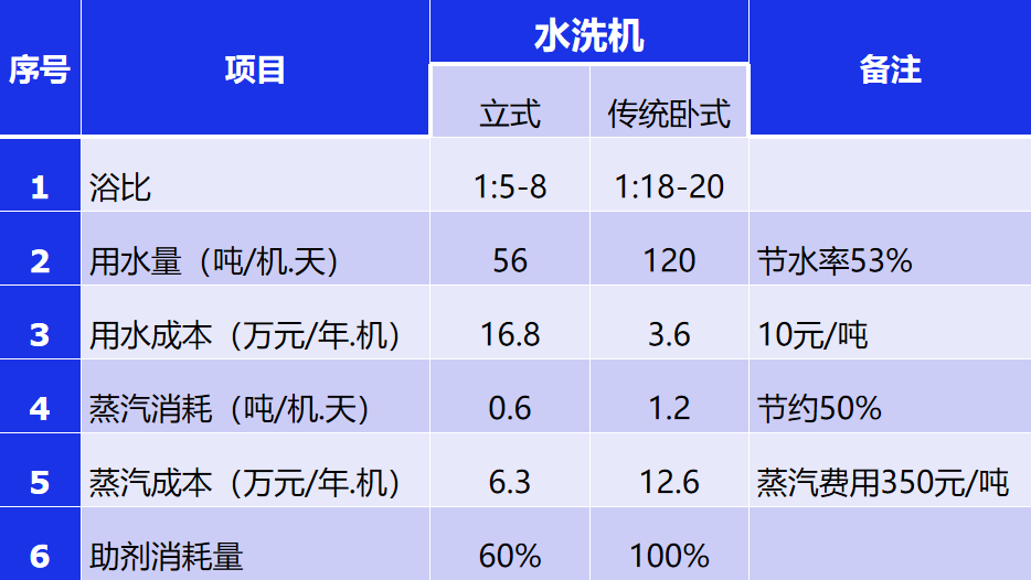 与卧式水洗机相比较,立式水洗机具有水耗低、能耗低、工艺能得到有效的控制、自动化控制程度高以及劳动强度较低的优势。但目前水洗企业里立式水洗机真正普及使用率低于30%。所以我们品牌商有必要要求供应商进行生产新技术的改进。