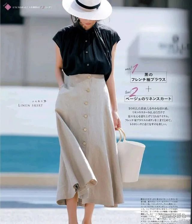 想要借助穿搭营造改头换面的效果或者是打造对比例的重新塑造作用,一定要优先选用卡其色的高腰过膝半身裙。这种裙子蕴含了极为出色的延伸效果,帮助体型进行明显的拉长,搭配一款深色单品,配色也不会太寡淡。