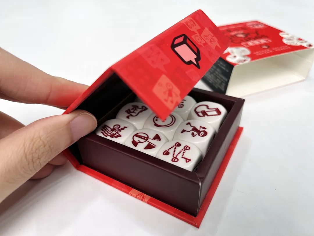 而且这款桌游完全没有紧张感,没有竞争压迫感,这是最能激发孩子表达意愿的。每套都能玩很久,每天抽出十分钟,听听孩子的新故事,既能享受高质量的亲子陪伴时光,又能锻炼宝贝的语言能力,乐趣无穷!由于图案组合千变万化,小朋友可以一直从两三岁玩到七八岁甚至十几岁,怎么玩都玩不腻,可以说是超值了!并且【故事小Q】每一枚骰子做工都非常精细??边角打磨光滑无毛刺,手感也好,给宝贝玩很安心。【豪华版】的封合方式是磁性锁扣,坚固耐用,包装盒非常小巧,很便携。
