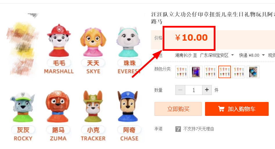 另一款是汪汪队粉必薅的【汪汪队扭蛋印章】,门店是9.9元一只,鹅爸19.9元7只,均价2.8元▼