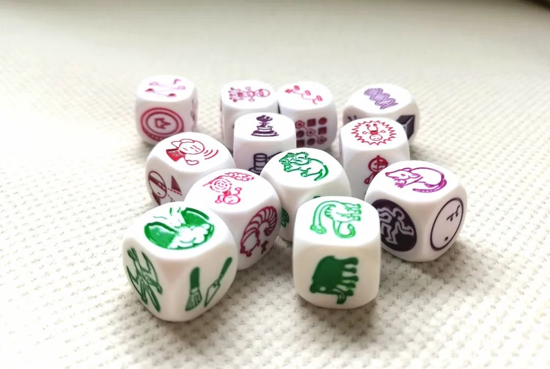 骰子上的图案,由??爱尔兰创造力培训师Rory精心设计,有童话元素的、动作表情的、日常事物的、旅行外出的……活灵活现,就像故事里的人物走出来一样,是孩子们一眼就会喜欢上的画风?▼