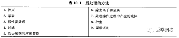 后处理也可以使用缓冲溶液[7],图10.2给出了基本的描述。通过使用适当的缓冲.溶液,不需要测pH,可以加快操作处理。缓冲溶液用来除去NH3和其他物质。使用缓冲溶液的缺点是增加了无机废物的量。
