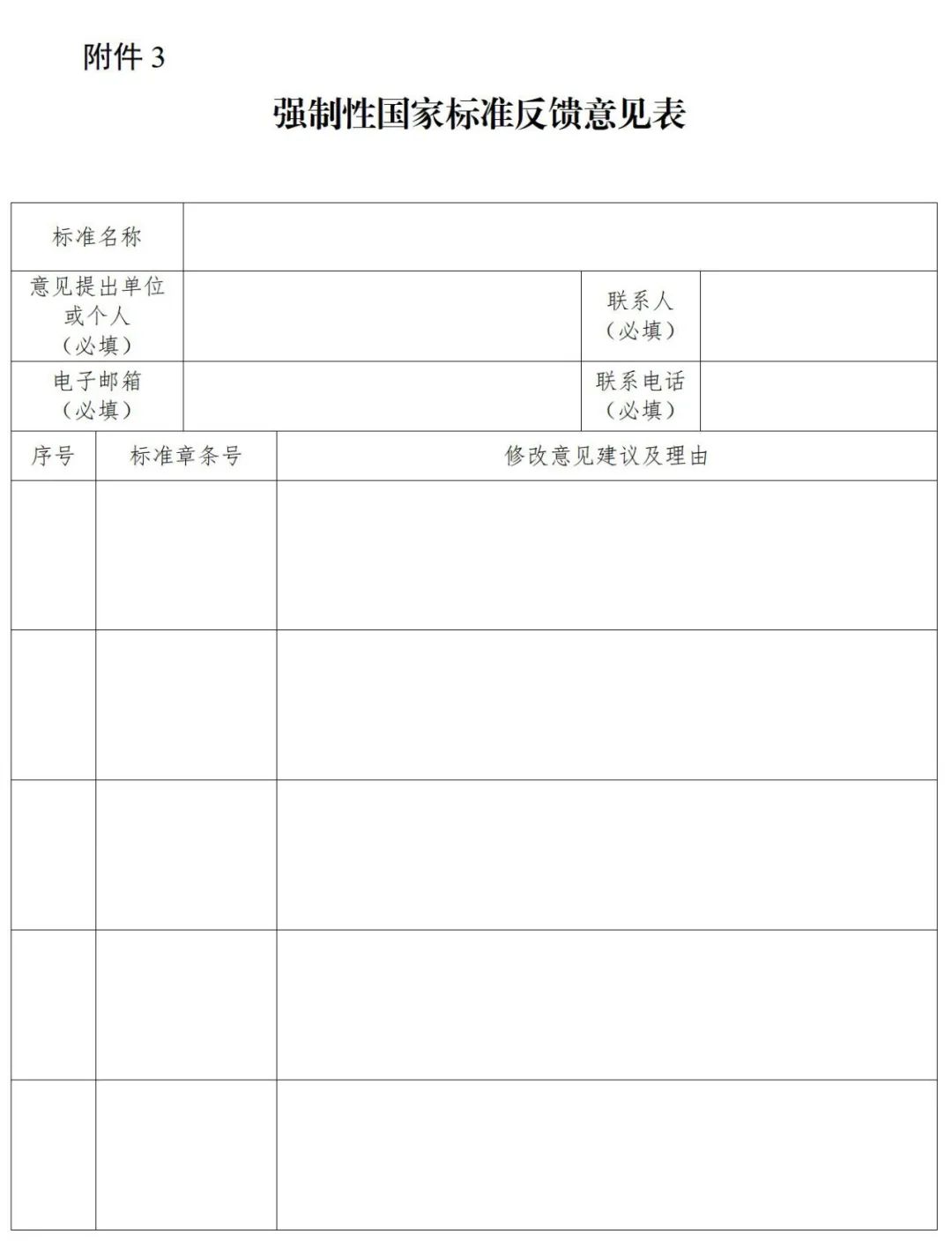 强制性国家标准反馈意见表