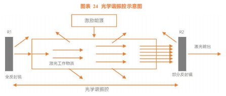 激光是一种电磁辐射波,是受激释放并放大的光。具体而言,能够产生激光的物质被激发后发生粒子数反转,通过谐振器的放大所释放出来的光就是激光(laser)。激光工作物质是指用来实现粒子数反转并产生光的受激辐射放大作用的物质,这是激光器的核心,只有能实现能级跃迁的物质才能作为激光器的工作物质,其内的电子可以发生受激释放而产生光子,充当这些介质的可以是固体(晶体、玻璃,如红宝石)、液体、半导体(如掺铝的砷化镓、硫化铬、硫化锌等)或者气体(原子气体、离子气体、分子气体,如氦氖气体)等媒质。激光的产生需要 3 个要素:激光工作物质、激励能源及光学谐振腔。首先光泵发射出光子,激发工作物质内部电子,实现粒子数反转后释放的大量光子,经过光学谐振腔的正反馈放大和一致化后,形成激光2。