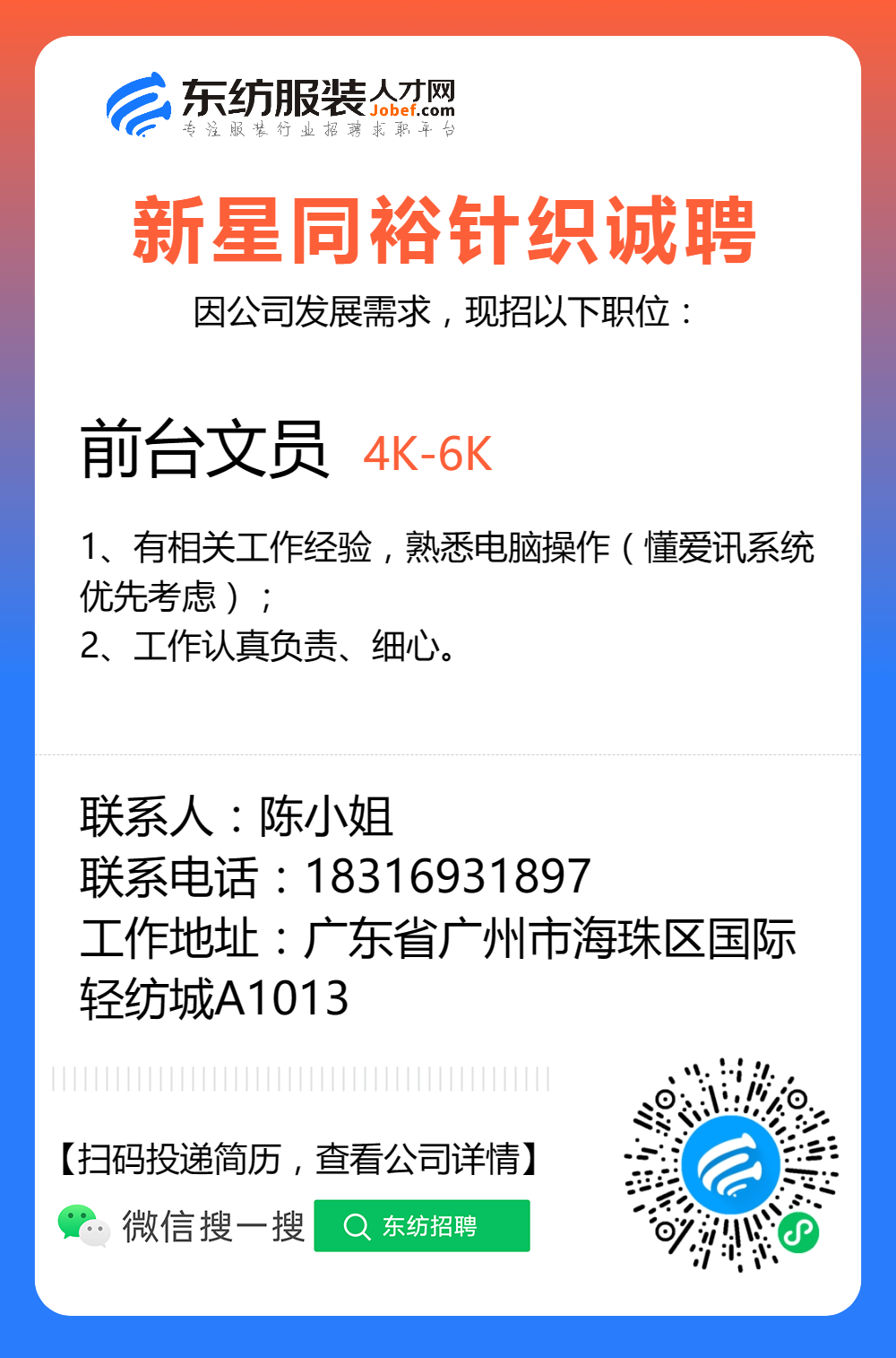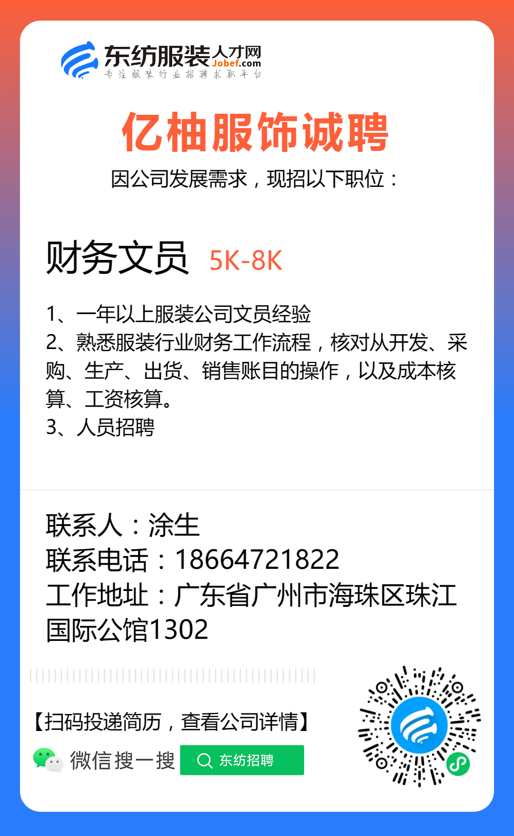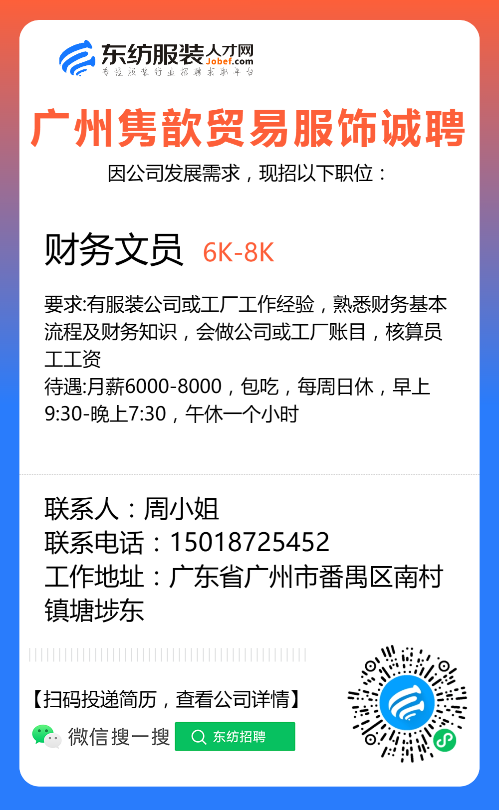 服装招聘·营销类丨8. 22 号,销售员、文员、会计、档口小妹……