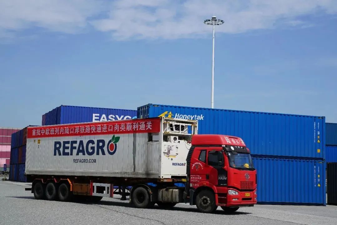 2023年5月13日,来自俄罗斯的72.3吨冷冻鸡爪,经中欧班列顺利运抵成都国际铁路港。这标志着成都国际铁路港中欧班列进口肉类冷链业务在全国率先重启,有效助力成都国家骨干冷链物流基地发展壮大。