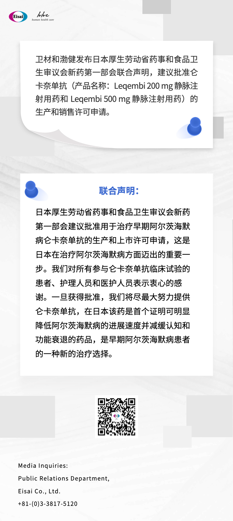 日本药事和食品卫生审议会新药第一部会:关于仑卡奈单抗的审议结果