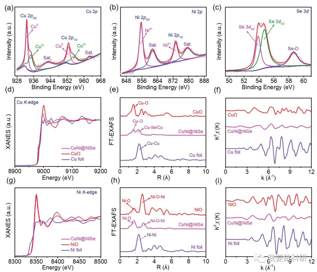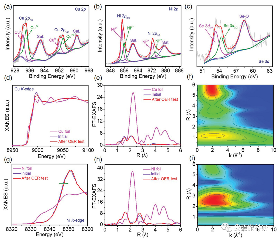 图4. CuNi@NiSe的OER测试之后的 XANES 光谱和EXAFS 光谱表征