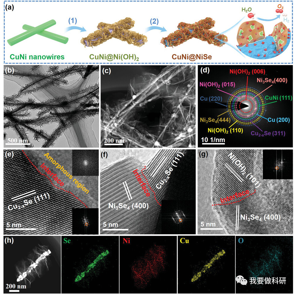 图1. CuNi@NiSe的合成示意图以及形貌结构表征
