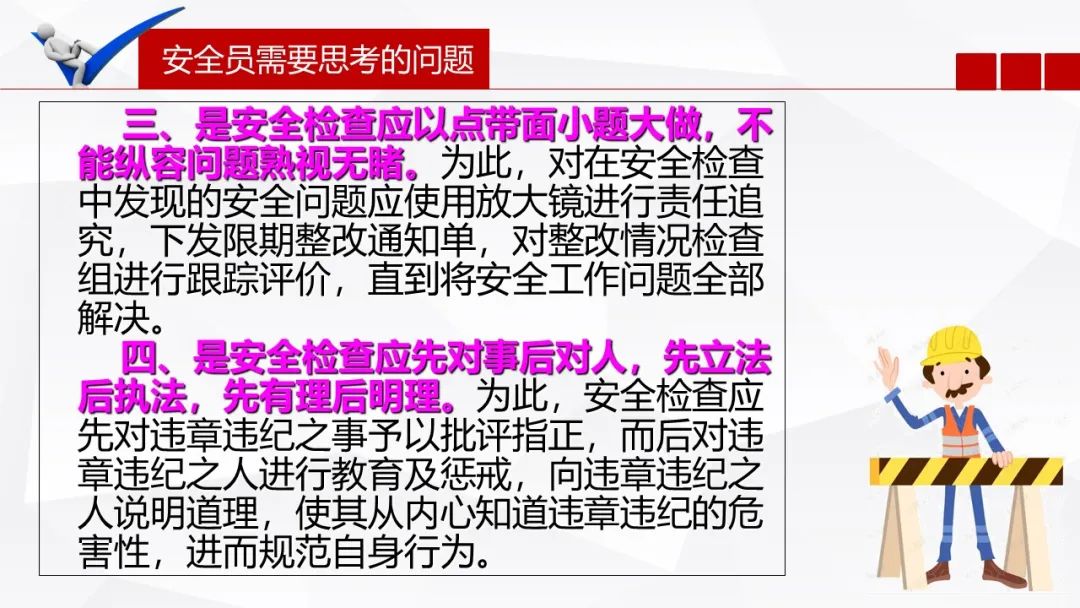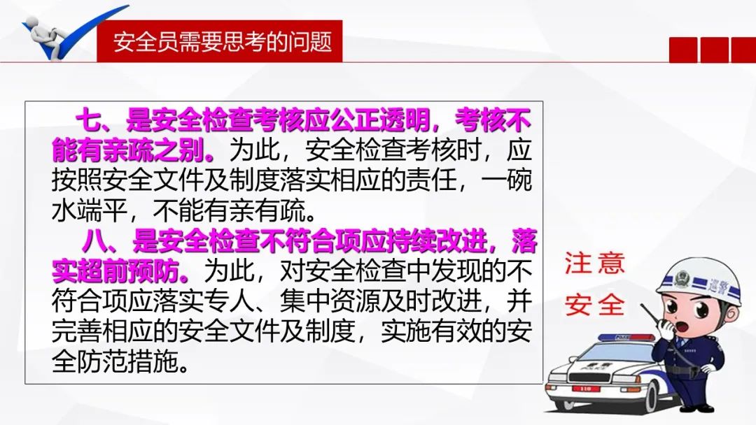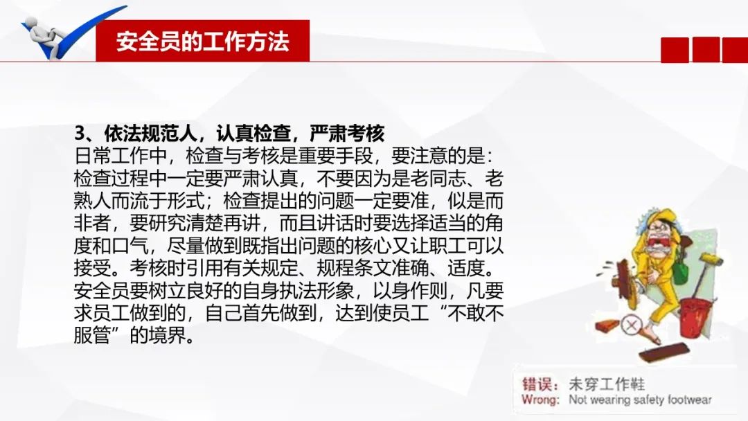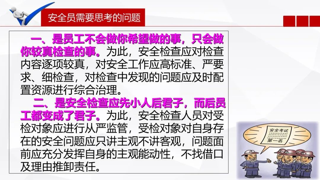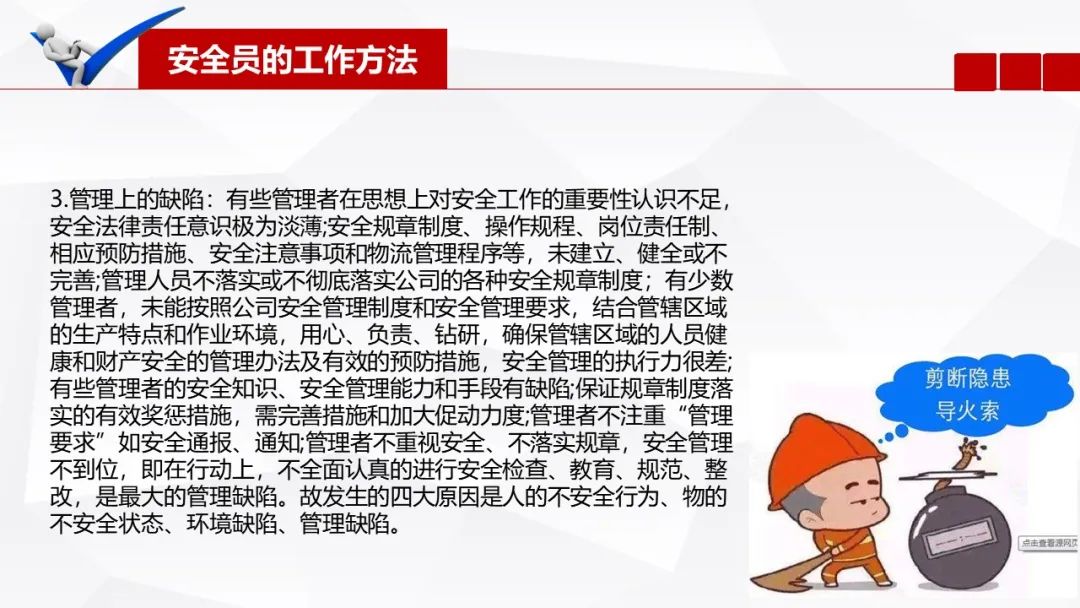 一、监督、检查,这针对的是我们安全管理人员的日常工作。