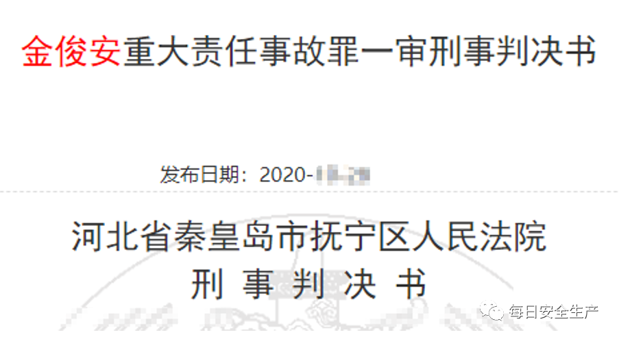 近日,河北省秦皇岛市抚宁区人民检察院以抚检一部刑诉[2020]147号起诉书指控被告人金俊安(某公司污水处理车间主任)犯重大责任事故罪提起公诉。