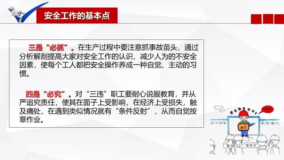 三、教育、培训,这是提高从业人员整体安全素质的重要方式。
