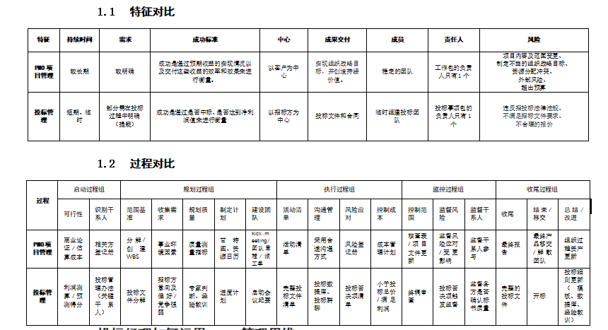 投标项目管理与项目管理的比照