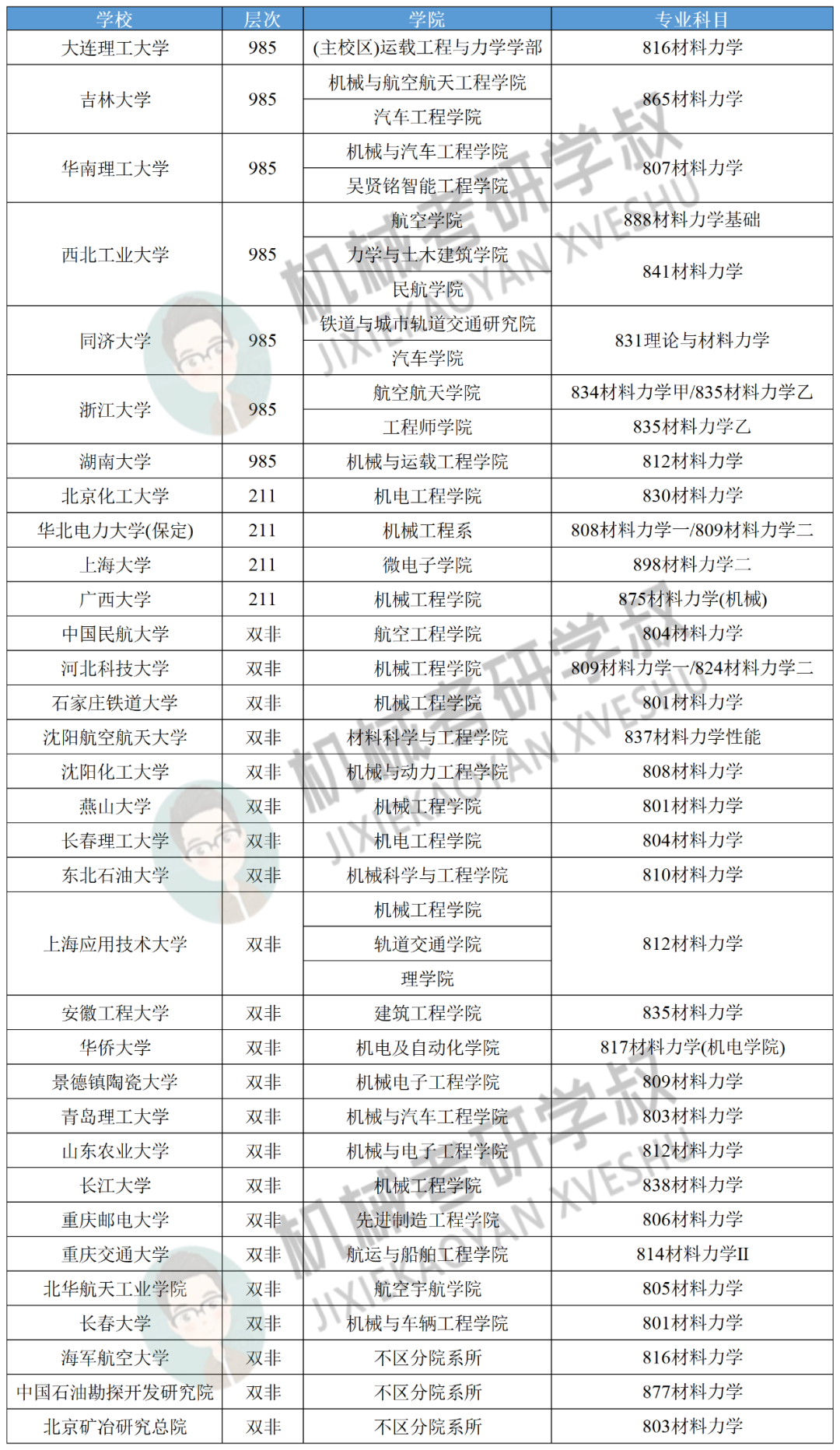 下面是学叔收集到的机械考研专业课考《材料力学》的院校汇总。