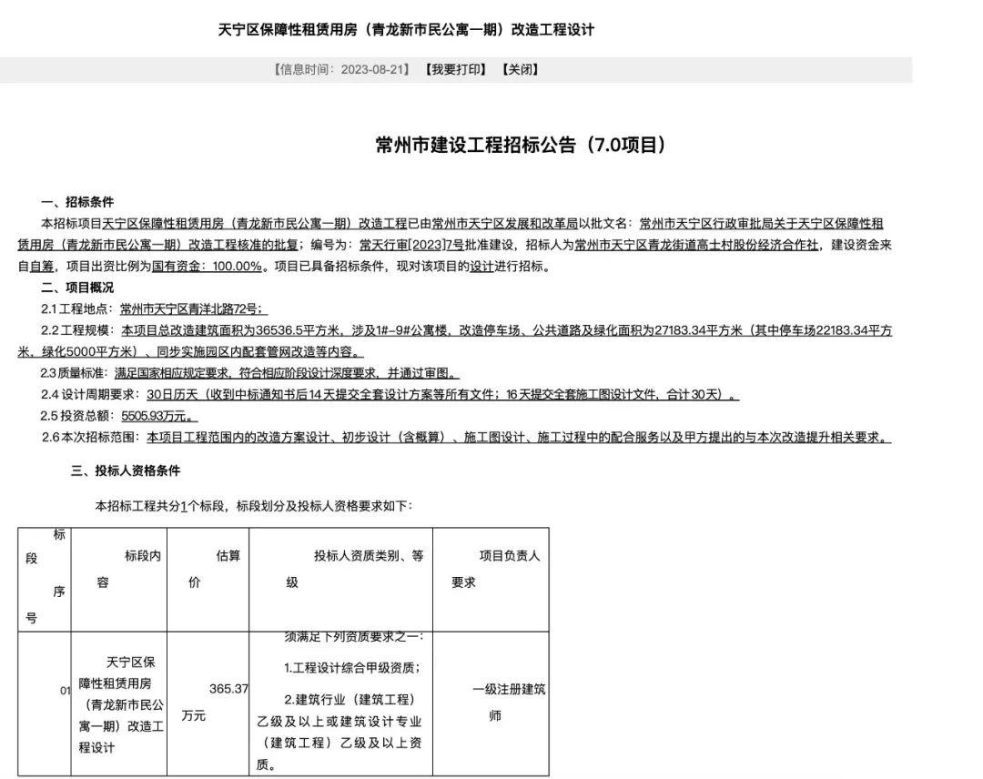 天宁区保障性租赁用房(青龙新市民公寓一期)改造工程设计