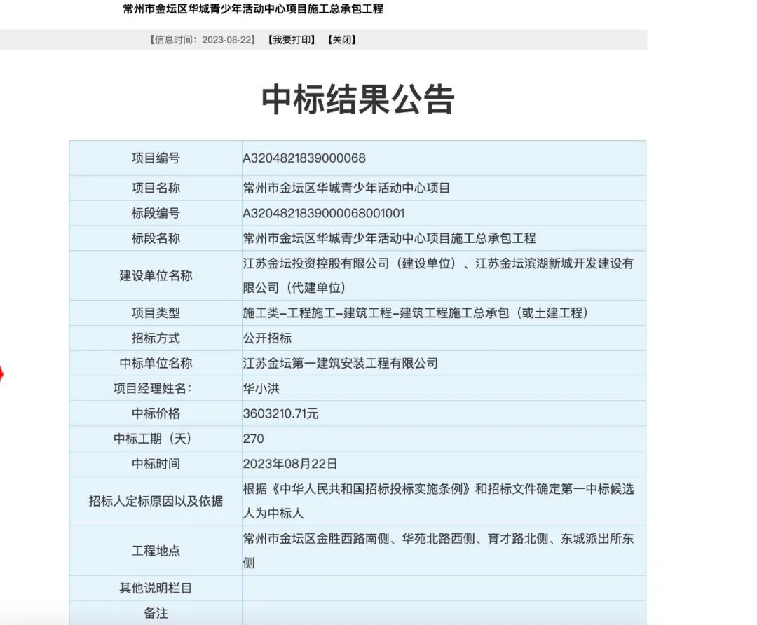 常州市金坛区华城青少年活动中心项目施工总承包工程