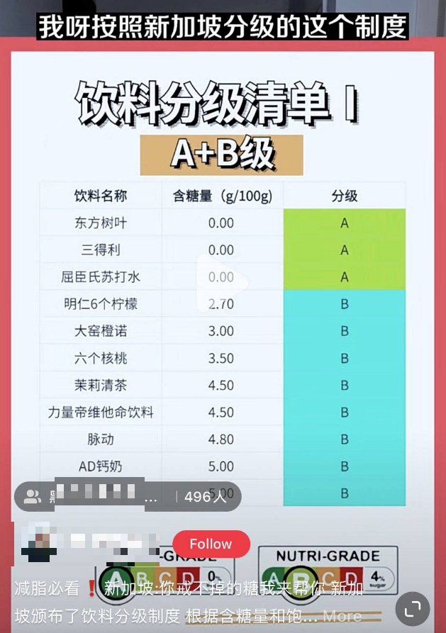 这里值得注意的是,这个评级标准是根据含糖量和脂肪量来划分的,没有蛋白质等其他营养成分,全脂牛奶含有乳糖和脂肪含量,因此等级到了C是正常现象,并不代表牛奶本身不健康。