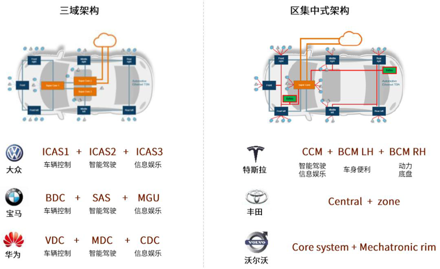 跨域融合阶段两套方案:三域架构与区集中式架构