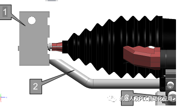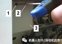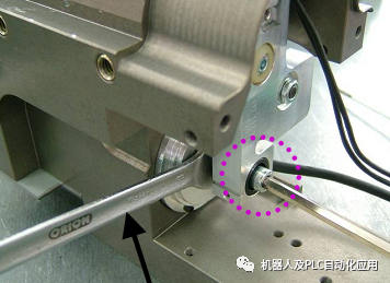3.松开两个螺钉(2)以夹紧开关(1),并移动开关,使焊头的前部位置直接显示在控制器上。