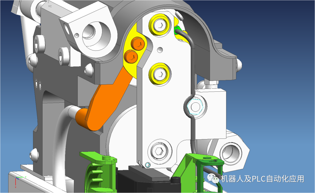 用于焊接头托架前后移动的两个节流止回阀集成在焊接头托架中。